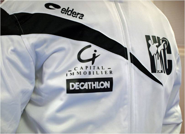 Issue de la marque Eldera et toujours à dominante blanche, la nouvelle veste IKC arbore cette fois des parures foncées. On retrouve le symbole de la ville de Fréjus au dos de la veste, accompagnée du nom du club en toutes lettres.